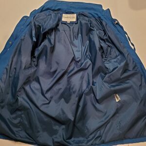 This is a Forecaster of Boston parka. This jacket has a full zipper up the front with a snap flap over closure for extra warmth and style. There is a drawstring at waist. Two hand pockets are on lower front. There is a drawstring at neckline to cinch it in for extra warmth.