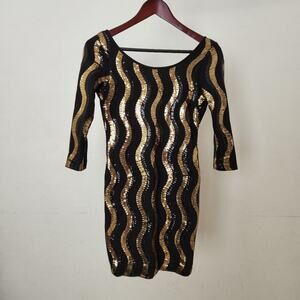 Foreign Exchange Women's Black and Gold Sequined Bodycon Mini Dress Size M