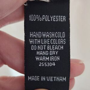Fabric Care Instructions: Hand wash cold with like colors, do not bleach, hang dry, warm iron.