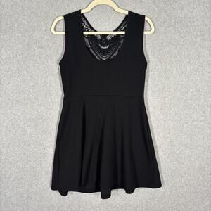 Foreign Exchange Dress Large Mini Crochet Lace Witchy Skater Boho Cowgirl Gothic Black Short Sleeveless Tank Fit Flare Knit Stretch Sexy Goth Grunge Punk Emo Rock Moto Biker