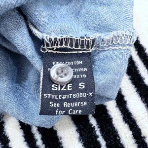 Foreign Exchange Fringe Lace Up Back Sleeve Adjust Loop Denim Shirt.