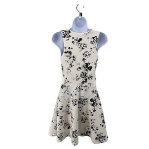 Women's Floral Cutouts Sleeveless Short Dress by Foreign Exchange, US Size S, Black/White with Floral Print, round neckline, sleeveless, pullover, casual, party, club, date, office, comfortable.