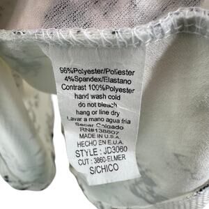 Gently pre-owned condition. 96% Polyester, 4% Spandex. Contrast: 100% Polyester. Hand wash. Made in USA. Style: JD3060