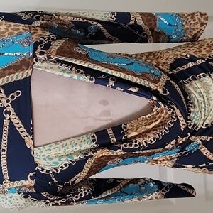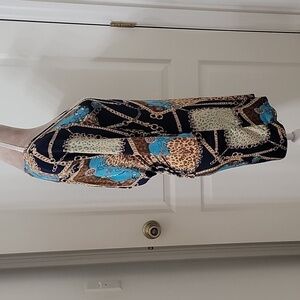 Foreign Exchange Size Unknown Abstract Bodycon Mini Dress, Cutout Back Accent. could also be worn as a tunic over leggings. please, please, please refer to measurements in photos to ensure proper fit.
