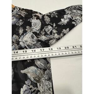 Foreign Exchange Surplice Wrap Hi Low Blouse S Black Floral Sheer Long Sleeve