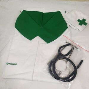 Get ready for the Halloween season with this 420 Dr. Blaze 3 piece costume set. It includes a lab coat, a hat and a stethoscope. Size M/L. Please refer to the size chart in the photo for measurements. Fun choice for Halloween costume parties.
