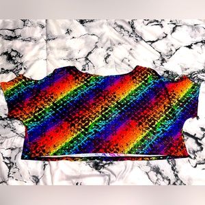 Foreplay multicolored rave top. It’s a crop top, with cut outs on shoulder. Barely been worn, still in excellent condition. Size M/L. Runs a little big. Matching bottoms in closet.