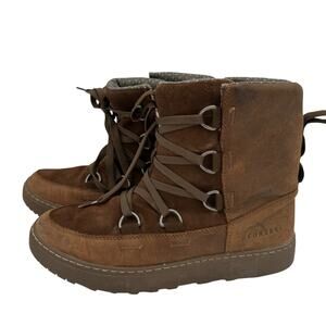 Foresake Women's Brown Leather Lucie Lace Up Mid Outdoor Boots Size 8.5