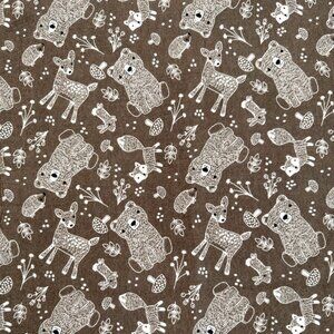 Super snuggle flannel forest animal baby blanket. This cozy blanket features bears, deer, foxes, rabbits, and hedgehogs, along with charming mushrooms, flowers, and leaves. Sewn inside out with a double stitch for extra durability, it was turned and top-stitched with light brown thread. Measuring approximately 32 1/2 x 33 inches, it's the perfect size for your little one to cuddle with.