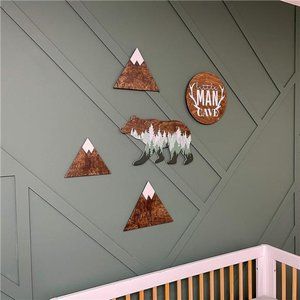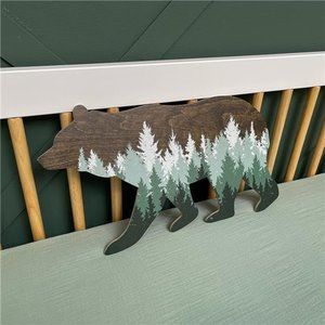 Forest Bear Wall Sign, Adventure Woodland Theme, Rustic Nursery Decor 18 x 10"