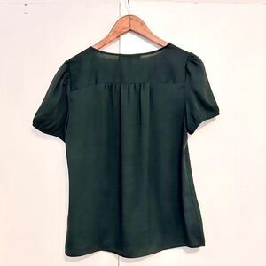 Adorable cap sleeve blouse! I jsut don't wear it enough, hoping to find someone who can love it instead of :). Dark forest green material, chiffon feel. Great condition!