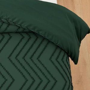 Forest Green Chevron Boho California King Size Bed Comforter Set Zigzag Bedding