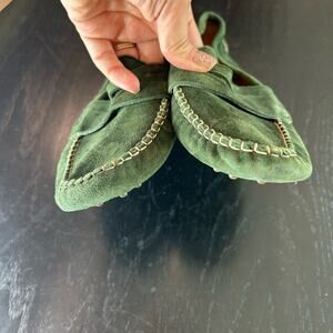 Forest Green Leather Suede Flats with Textured Sole - Sz 8 - some wear
