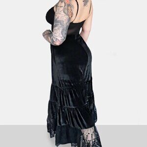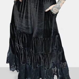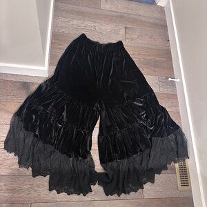 Black velvet bloomer pants with lace bottoms. Very soft and stretchy - Complete with pockets and elastic waistband!