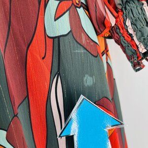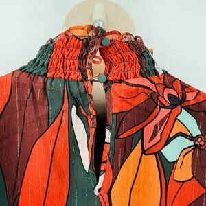 Forest Lily Mini Dress Size XS High Neck, Elastic Waist Fall Print Metallic