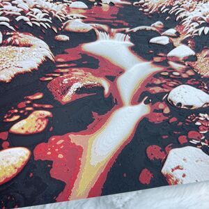 Experience the visual tranquility of a creek flowing over the rocks with this beautiful 3D printed artwork. The peacefulness of the following water seems to come off the art. The colors and texture in this piece is bound to grab people’s attention.