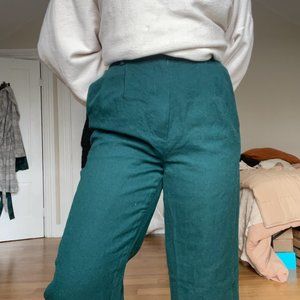 Deep forest green high waist trousers, excellent vintage condition with slight pilling. I usually have to cuff these twice because they're a bit too long for me. Size 4 petite, shown on a size S/25" waist/5' model.