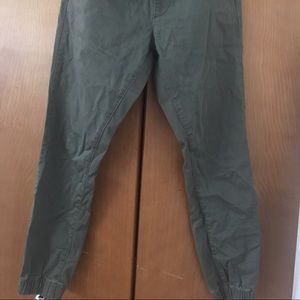 Forest green Bullhead joggers, small pen stain on right leg, gently worn.