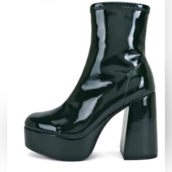 Forest green patent pleather assign platform ankle boots booties size 9.5 new
