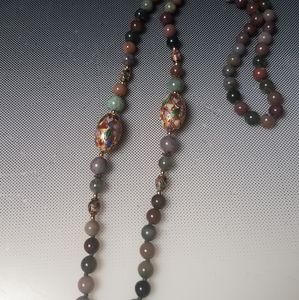 Forest treasure multi colored real jade necklace with 4 cloisonne beads 2 large 2 small. Hand knotted beads.one of a kind