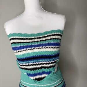 This super cute Forever 21 matching set includes a strapless knit crop top and a high-waisted maxi skirt. The striped crochet-style fabric gives it major Y2K + boho vibes. Perfect for vacation, brunch, or a statement summer look.