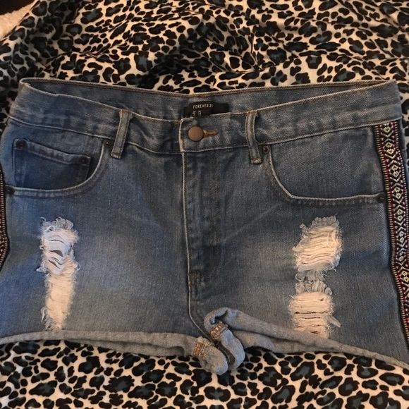 Denim shorts with cute Aztec detail on sides.