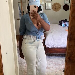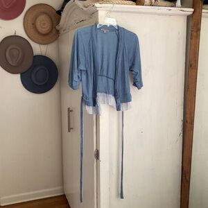 Forever 21 V neck 3/4 sleeve light weight sweater with wrap around attached tie size M