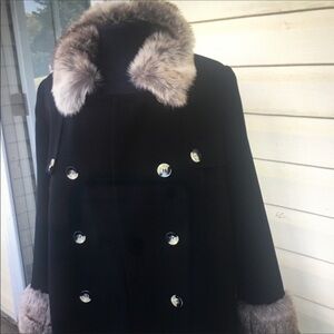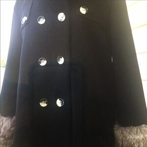 Adorable forever 21 jacket fully lined with for fur around collar and cuts button closure with double breasted button look on the small signs of wear