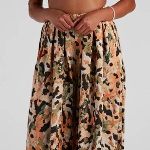 Forever 21 Abstract Art Satin Wide Leg Pants