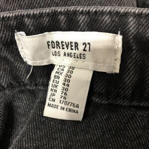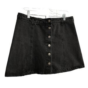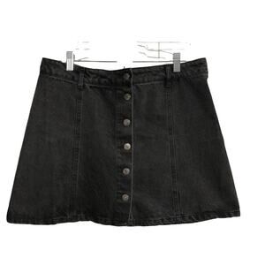 Forever 21 A-line mini skirt, button front, fitted waist, black denim 30 Black