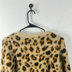 Forever 21 Animal Print Tan Black Orange Cardigan Mob Wife Size S Button Down
