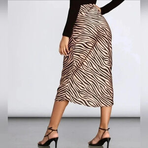 Forever 21 Annie High Front Slit Animal Print Midi Skirt. Size Small. In great used condition with minor snags. High Rise on the waist.