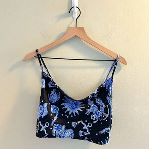Forever 21 Astrology Crop Top Size Medium Cami Tank Black Blue Horoscope