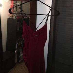 Small | Burgundy | Wrap design, shirring at one side, and an asymmetrical hem | NEVER WORN.