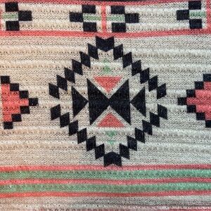 • Color/Pattern: Aztec / tribal geometric print with coral, mint, black, and cream tones