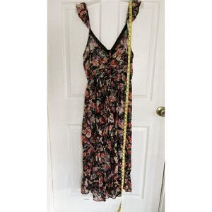 Forever 21 Babydoll Dress M Sheer Ruffles Asymmetric Dark Floral Fairy Cottageco