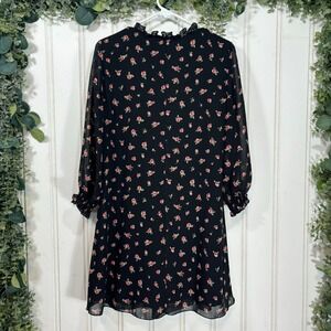 Forever 21 Babydoll Mini Dress MEDIUM Black Floral Feminine Romantic Alexis
