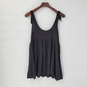 Forever 21 Babydoll Tank Womens S Black Rayon Scoop Neck Bow Tie Straps Flowy