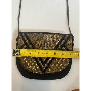 Beaded/sequined bag, 7 inches by 6 inches. Zipper and snap front