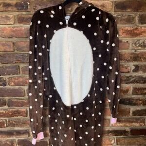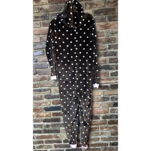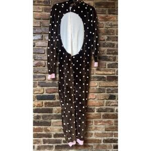 Forever 21 Bear Animal Polka Dot Brown White Plush One Piece Pajamas Size Large