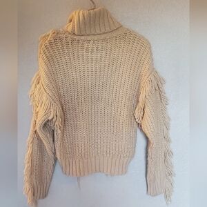 Forever 21 Beige Fringe Chunky Cable Knit Turtleneck Sweater Size Medium