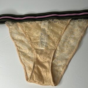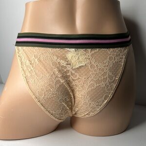 Forever 21 Beige Lace With Sporty Stripe Elastic Waistband Panties Sz M NWT