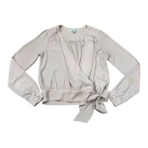 Forever 21 Beige Satin Plunge Wrap Tie Blouse S