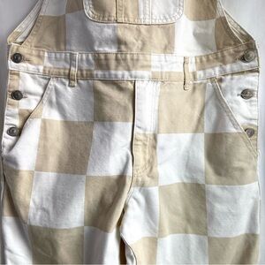 Forever 21 Beige and White Fun Checkered Overalls Unisex