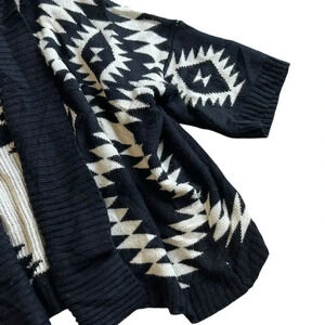 Forever 21 Black Aztec Print Open Front Shawl Cardigan S