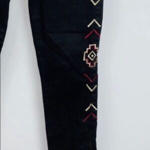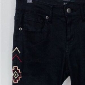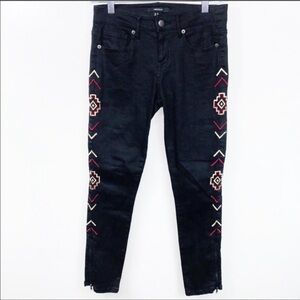 Forever 21 Black Denim Blue Jeans With Aztec Print Embroidered on the side and Ankle Zip Detail Skinny Jeans