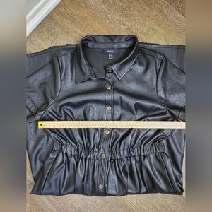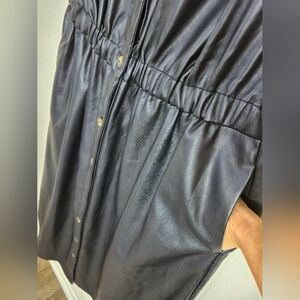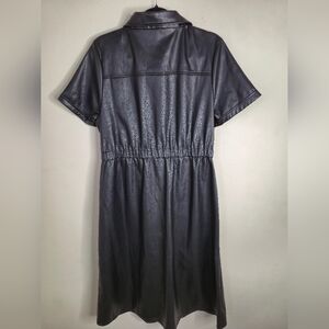 This stylish black midi dress from Forever 21 features a notched collar and short sleeves, perfect for casual or work settings. The buttoned front and cinched waist create a flattering silhouette, while the A-line skirt adds a touch of elegance.
