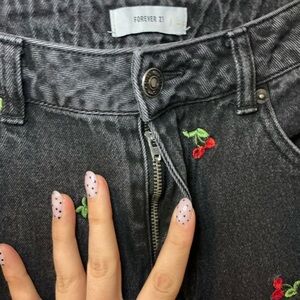 These chic black jeans from Forever 21 feature a trendy ankle-cropped design, perfect for showcasing your favorite footwear. Crafted from durable denim, they offer a sleek and modern silhouette ideal for any casual outing.