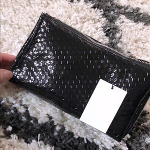 This Forever 21 Cosmetic Bag is NEW w/tags. Has Silver Zipper closure top and is a Shiny Black Faux Leathery Plastic color & material with a 3D square design. Pouch can also be used as a pen/pencil case or any accessory organizer. This Glam looking makeup organizer is perfect to have for any use.