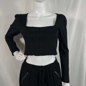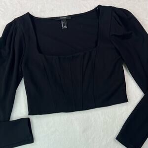 Forever 21 Black Crop Corset Style Long Sleeve Top Large